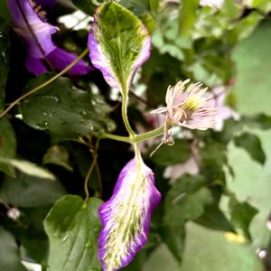 真夏🥵💦真っ只中 又、頑張って三種混合クレマチスの晴山が咲いてくれました🌸🍃半分位のサイズですね かわいい🥰💕 双子のようです👶👶