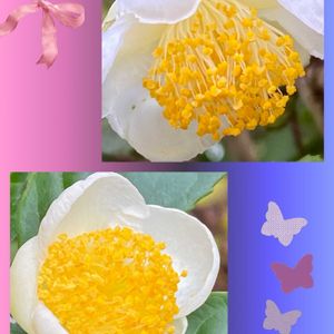 今日の庭の様子 ①チャノキノハナ コラージュ ②ランタナ ③ベビーサンローズ ④カワラナデシコ ⑤ミニバラ🌹