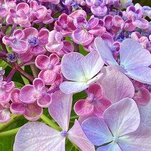 今日の早朝ウォーキングで ①②アジサイ 一房に2種類のアジサイが‼️❓ ③④⑤紫陽花