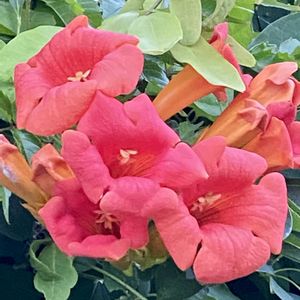 今日の早朝ウォーキングで ①ルリマツリ ②ユリ ③④ヒマワリ🌻 ⑤ノウゼンカズラ