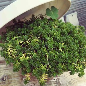 初投稿です。 ガーデニング初心者ですが、楽しんでいます。 ガーデニングの先輩、母より譲り受けたモリモリセダムから、クローバーが一本ひょっこり出てきましたヽ(*^∇^*)ノ
