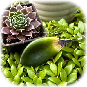 今朝、カーポートの隅で見つけた大きくて緑色の多肉の葉。 (ダイソー産ポットは大きさ比較のため) 近くには、それらしい多肉はなく 何の葉なのか、ずっと気になって仕方がありません😣 水曜日(ノー残業デー)で早く帰宅し 探し回りましたが、該当する多肉は見当たらず💦 さっき主人が「歯に挟まったエノキが取れた!」とスッキリしていましたが 自分は、葉の種類が分からずモヤモヤしています💭💭