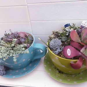 寄せ植え💕 詰め詰めにすると蒸れて溶けやすかったので隙間を空けてます。 大きくなぁれ〜 多肉ちゃんたちが見たくて、早く家に帰りたくなる^_^