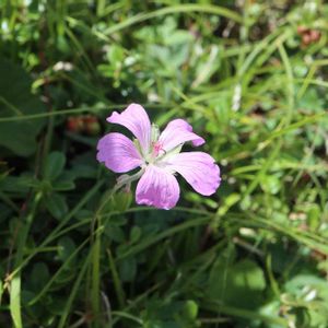 ゲンノショウコです。 自然大好き派😘、兼園芸もやっています派です😅。今日の花は珍しくありませんが、実はこの個体は今春にタネを蒔いたものです😊。2月下旬にタネを撒いたらなんと1年で開花しました。他の鉢も全て開花しましたので、偶然ではなく芽を出した初年度から開花しますね。発芽率も高く(80%)普通の世話で開花しました。開花まで年数が必要な山野草が多い中で1年は異様に早いです♪😊。後は生薬としての薬効の確認かな?😅。
