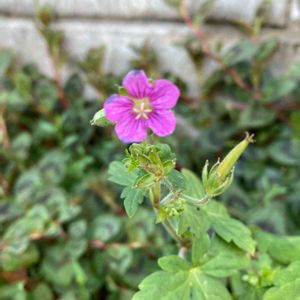 ゲラニウム・インカヌム🌸🌿 寄せ植え用して購入したお花です💗 花びらはピンクパープル💗💜 葉はコスモスみたいに細かく切れ込みが入っています🌿 繊細で涼し気な感じの花です✨ ※カーペットゲラニウムとも言われ 、横へ横へと広がって育つ種類 耐寒性 多年草 高音多湿に弱い