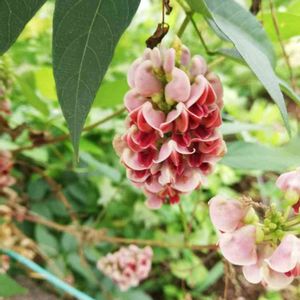 ドクダミの中に咲いていたのでびっくりして引っ張ったら、ツルにくっついて出てきました🤭マメ科の花❓ アピオスと教えていただきました🎉 インディアンのスタミナの源と言われる,栄養満点のマメ科の植物。 アピオスは北米原産のマメ科の植物ですが,一般的な豆のようなものではなく、ネックレスのように繋がった塊根を食べます。