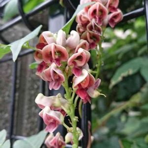 何年も前から6月から7月にかけて毎年花が咲きますが名前が分かりません。根は芋の様です。ツル状でフェンスに絡んで上に伸びます。