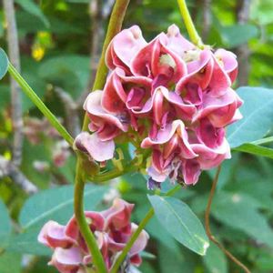家の近くの野草⁉︎ 緑の草原にピンクの花が目立って咲いてました^ ^ 名前がわかりません どなたかわかる方いらっしゃいますか⁉️ 教えて頂きました❣️ アピオス 別名アメリカホドイモ だそうです^ ^ 食べられるお芋のようなものが出来るみたいです💓