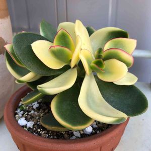 【No226カゲツ(カネノナルキ)】 縁起がいい名前で、葉が可愛く、花の美しさで人気の植物。 正式名称はクラッスラ・ポルツラケア。和名はフチベニベンケイ(縁紅弁慶)。しかし、このように呼ばれることはほぼなく、カネノナルキやカゲツ(花月)、ナリキンソウ(成金草)と呼ばれています。 元々、英語名Dollar Plantの由来が葉がコインに似ているからでした。さらに、若芽の時に5円玉をくぐらせ、成長させてから販売されたので、カネノナルキ(金のなる木)と呼ばれるようになりました。 花言葉はもちろん「一攫千金」「富」「幸運を招く」「不老長寿」。 来年こそ金運をアップさせて、縁起よい一年を過ごしていきたいものです。