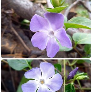 【蔓日々草】《キョウチクトウ科》 花言葉 「優しい」「思い出」「幼なじみ」 「優しい思い」「生涯の友情」 「楽しい思い出」 ヨーロッパでは常緑で冬でも枯れないことから、不死のシンボルとされています。 またツルニチニチソウ(蔓日々草)を身に付けると繁栄と幸福をもたらしてくれる、という古くからの言い伝えがあるそうです。 色の名前の「ペリウィンクルブルー」は、ツルニチニチソウ(蔓日々草)の英名、periwinkleが名前の由来です。
