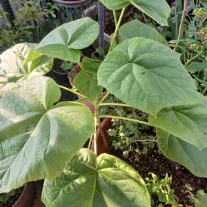 昨年芽が出て、小さかったのですが、今年は葉が顔の大きさ位になりました。葉は、やわらかいです。