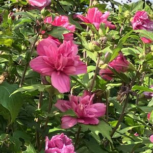 おはようございます😃 ①③④ 散歩道にて🤗 ①八重のムクゲ 濃いピンク🩷色も綺麗ですね☺️ ②ハギとペコちゃん 切って、花瓶に、外玄関にかざりました😊(私の庭にて😉) ③ヒマラヤ杉 今回は雄花です😅 ④キリ(桐) 実がたくさんなってました😊 ⑤ハツユキカズラ ピンクの新芽🌱が,ぐんぐん 伸びてました☺️ 🏷️ぐんぐん祭り 🏷️斑入り見つけ隊♪No.23 🏷️2のつく日は斑入りの日 🏷️ペコちゃん祭り 🏷️木曜日は木の実 🏷️木曜日は木に咲く花 参加します。