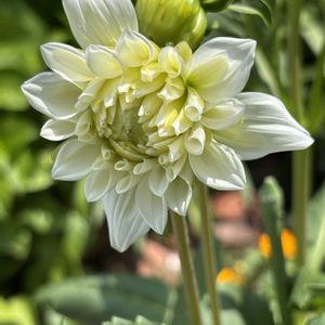 ガーデンマムジジ 鮮やかな黄色がお庭に彩りを与えてくれます🤭 丸い形も可愛らしいです 今日のお花「キリ」 ちょっと前に家の脇の砂利道に生えていました 育てていたらあの紫色のお花が咲くのかな?と思い興味本位で育てています😅 ん…? キリの後ろにあるのは… 実は1ヶ月前ほどに真っ白の素敵な塀を作りました✨️ お花たちを花壇になかなか移植できなくて寂しかったので、塀の事を紹介できませんでした… まだ鉢植えになっている子たちを戻さないと〜って思っていますが、暑すぎてできないなぁ😅