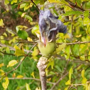 視線の先に見える樹木はキリ~近づいて見ると、神楽鈴のような姿で、ラクダ色のフェルトをまとった鈴が沢山ついています‥♡ 調べました‥👌🎶 キリ(キリ科) キリ属 なんと~来年5月頃に咲く花の蕾なのだそう‥(@@)!! 今年の花が終わって~7月の大暑を迎える頃(7/23-27)には目立ってくるそう♡ 年間の気候の変化をまとめた「72候」のうち 『桐始結花』(きりはじめてはなをむすぶ) と言う表現があって~桐の花の蕾をつけ始めることが表されています♡ 昔の人の自然を感じる細やかさにはびっくりデス‥💓 ラグビーボールのような果実~固まって見えています‥👀 冬、尖った嘴のような先端が割れて見られる種子~興味津々デス‥💕 ⑤ エナガの群れにシジュウカラも混じって賑やかでした‥🐦⬛ (*˘︶˘*).。.:*♡
