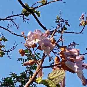 今日のお花 キリ 市内を流れる川沿いの道路端にて 25/04/19青天の日に 薄い紫色の花が青空に映えていましたが 余りにも高い所で咲き ズーム,背伸び、腕を目一杯伸ばしの四苦八苦でなんとか😂 以前は、桐🟰箪笥としか頭に浮かばなかった💦 お花の存在など知る由もなし GSに参加して知りました💜 その昔,女の子が生まれたら、キリの木を植え嫁ぐ時,そのキリで箪笥にして嫁入り道具にして持たせる習慣があったそうです 古き良き時代の習慣☺️ 7月22日 大暑 朝から暑い🥵こと 早朝から2時間程庭仕事 頭から水を浴びたかのような汗💦💦💦 シャワーしてやっと落ち着き投稿を😊