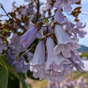 お早う💟ございます🙋♀️ 🌸今日のお花🌸 ノウゼンカズラ科 キリ属 中国原産 背が高くてpic撮り大変ですね〜❣️ 💠昔からタンスやお琴の木材🪵 丈夫で扱いやすく、水を通さないと説明が有りました。 鳳凰🐦🔥が桐の木だけに止まると いう神聖な木🌲だそうです。 花言葉ー高尚