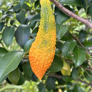 隣のゴーヤが我が家の庭まで 攻めてきました。 法律の上ですと 隣の家の物とのことでです。