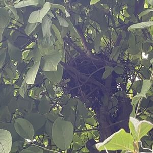 シャラの木に知らないウチに鳥の巣発見!見つけた途端に何故か下におりて遊んでる。三羽!!