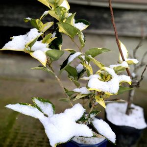 馬酔木ミニミニ苗木。小さい葉っぱが出てます🤩 雪でビニール温室の周りが半分…埋まって、中に入るのも一苦労…😅 まだ…シンシンと雪❄は、降ってます🥶