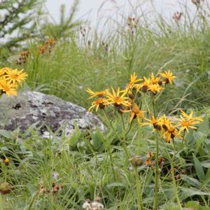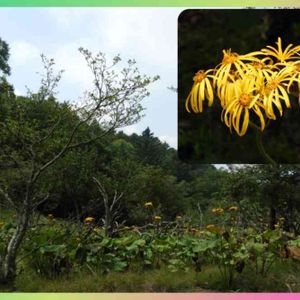 ブナ帯を彩るマルバタケブキは葉っぱに毒があるので鹿の食害に遭わずにすんでいるそうです。他の高山植物は被害に遭っていて減っているという事です。 この花を見ると、あ~夏!と思い、家のツワブキが咲くとあ~冬が来る!と思います。