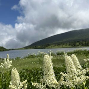 一切経山から下りて 鎌沼に到着𖡼.𖤣𖥧𖡼.𖤣𖥧 2週間前 蕾だったコバイケイソウ☁🫧🤍 近くに遠くに 両手広げてちょんと⸜(*˙꒳˙*)⸝ 想像以上にかわいい姿と景色✨ 3枚目… 真ん中の花序だけが両性花 4枚目… その下の花序は全て雄花 花被片6枚 3~4年の周期で咲く 毎年見られないのが残念( ˘-з-)