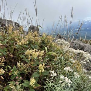 カリヤスモドキ(刈安擬) ススキ属なので 今日のお花の仲間に入れて下さい🙇♀️⋆꙳ 背丈が50㌢ほどなので 他のお花と馴染んでました 3.ヤマハハコ 優しいクリーム色 こんなふうに褪せてゆくんですね♡ 4.5シラネニンジン 初めて花後を見ました 花と並んでると 違うお花が咲いてるようでした🌸✨️ 那須岳の主峰(標高1,915㍍) 茶臼岳にてᨒ𖡼.𖤣𖥧 初めての県外遠征✌️