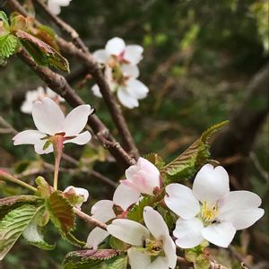 当初の目的🌸 今頃、桜が咲いているという情報に 誘われて〜山登りして⛰ 可憐なお花に出会い 忘れそうだった💦 所々に淡いピンクの木が💗 遊歩道から遠い所に・・・ やっと、下山途中目の前に👀✨ ミネザクラ(峰桜) バラ科の落葉小高木 本州中部以北の高山に自生し 葉は倒卵形で先が尾状にとがる 5.6月ごろ、葉と同時に淡紅色の 5弁花を開き、黒い球形の実を結ぶ タカネザクラ(嶺桜)とも なんか格別💗✨ 葉っぱの特徴はpicを見てから 気づきました😅 だって、お花可愛すぎ❀.*・゚ 花弁の形といい 後ろ姿といい惚れ惚れします💕 お山は まだまだ、これからが春なんですね🌸🐝 昨日の名無しのお花の名前が分かりました📛 気になる方は昨日の投稿、また見て下さいね( ᵕᴗᵕ )