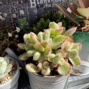 ①昨年の夏に殆ど葉を落としてしまった熊童子錦。こんなにモリモリになりましたが、なんとなくサビ病の疑いが晴れないので、いつもは隅っこに居ます😅 ②レツーサからは子株が出てますが、成長は🐌ゆっくり🐌Շ˝ན