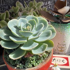 おはようございます☀⛅️ 昨年7月頃やまちゃっかさんより譲り受けた竜鱗です。 小さな株がひとつ、極小株がみっつだったのですが、最近新しい芽が登場したようです。 竜鱗の増殖力はすさまじいですね。何より順調に成長してくれていて嬉しいかぎりです。 大事ないただきもの。じっくりゆっくりつくっていきたいと思います。
