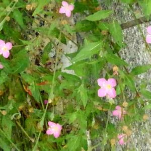ユウゲショウ(アカバナユウゲショウ) [夕化粧] 名の由来は夕方から咲くことによるが、現在では朝から咲いています。 観賞用として明治時代に輸入されましたが現在では雑草扱い。 悲しいデス! 花の色はピンクのみ 開花期 5月〜9月 花言葉は「臆病」 その言葉とは裏腹に結構自分のウチのまわりには咲いています。 ○道草を くへば赤白 夕化粧 おもてなし家さん