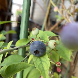 我が家のブルーベリー🫐 2個だけ大きくて完熟🙌🙌 早速初パクリ! 甘くて美味し〜♪(´ε` )