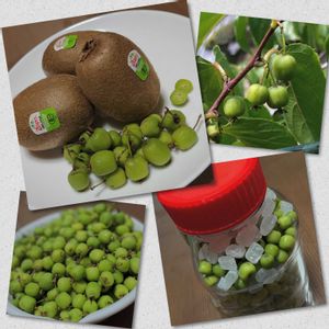 サルナシの実🥝🥝🥝 黒くなったり枯れたりしちゃってる実があったので収穫しちゃった❣️ら…収穫時期は9月から10月だって〜なんですと‼️🤪でも採っちゃったものは仕方ない…サルナシシロップ作ってみるよ🥝✨