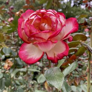 日比谷公園 第一花壇の"自由の女神 ルーパ・ロマーナ像"の左端で今咲いている「バラ アキレス」。 パッと見ただけで目に飛び込んでくる存在感がある豪華なバラ。