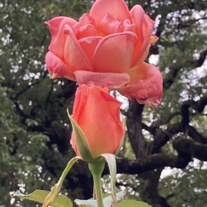 日比谷花壇 第一花壇の「バラ ヘレン トローベル」。 サーモンピンク色の花で,次第に黄みを帯びて杏色に変化するそうです。