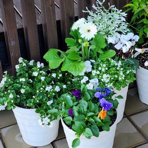 鉢植えを少し整理しました~ 1️⃣バコパ ビオラ 白の寄せ植え 2️⃣バコパ