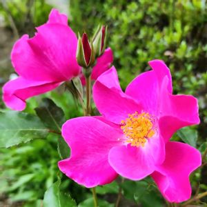 バラ・ニュース(FL) 1968年イギリス 1️⃣鮮やかなマゼンタ色の花弁に黄色い花芯がマッチしたとても綺麗なバラです。丈夫で花付きがとてもいいです。 2️⃣蕾は小さくてとっても可愛らしいです!