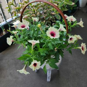 冬を超えたペチュニア ダーリン✨ 蕾もいっぱい🎶 お迎えした去年は、もっとピンクみのあるグラデーションだった(4枚目)のに、ピンクの存在は申し訳程度のリップになっちゃった💦 まあこれはこれで可愛いけど😊