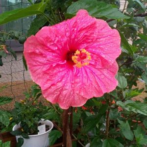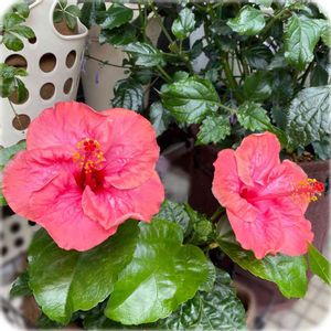 こんにちは👋😃 今日は、スゴい雨☔️ そんな中、子リオちゃん咲いてました🌺 この子は、2年前に2本挿し木した子🌺 大きくなったわ💗 親株は、3本でスタンダード仕立て🌺🌺🌺の2本がダメになったので、子リオちゃん2本を親リオちゃんと一緒に植えてあげました🥰 親子で元気に育ってます🌴 無理矢理に根をカットして、くっつけたので、育つかなぁと思ってましたが、元気に蕾を沢山付けてます🎵🥰