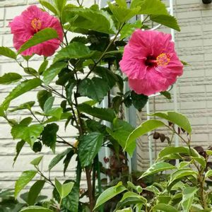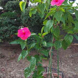 昨年、挿し木したリオちゃん。 ぐんぐん伸びて2輪咲きました🌺 9月16日で1歳になります🎂 2本同じ鉢に植えてるので1輪ずつ咲いてます💗💗