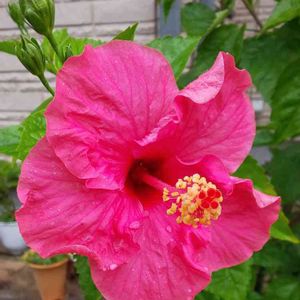 こんにちは👋😃 3年目のリオちゃん、 花弁くしゃくしゃ🌺 ☔️の中咲いてくれました🌺🌺