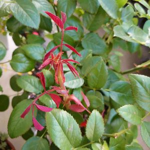 薔薇 トゥルーブルーム レッドキャプテンの 株元から新芽(シュート?)が生えています‼️🌱 急に寒くなってきたので、このまま外に置いておいても大丈夫なのか心配です😟💦 この薔薇は自根苗とのこと。 今まで育ててきた薔薇と性質が違うのでしょうか? 薔薇はほんと品種がたくさんあるので、育て方も幾通りもあって、奥が深いですね😌