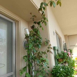 西側壁面三度目の秋です🌹🌹🌹 去年は夏に葉を落としたあと、秋の芽吹きに合わせてヨトウムシが大量発生して丸坊主のバラでしたが、今年は食われつつも葉っぱだいぶ増えました!🤗 去年の緑はほとんどアサガオだったのがだいぶ置き換わりました(^^) ・左側のコレッタは、夏に葉を落とさずに大きくなってきました。夏に強い気がします。返り咲きとは書いてありますけど秋は咲かないような気配です。 ・左から二番目のレオナルド・ダ・ビンチは夏に葉をほとんど無くしました。秋の芽吹きは弱いです。が、花は咲いてきてます。 ・真ん中のつるブルームーンは、夏に葉を落としました。夏剪定で汚い葉っぱ取って軽く剪定した頃からの勢いが良いです🤗 ・右のグラハムトーマスは今年が初めての秋。夏の落葉はそこそこありました。秋の花も咲いてきています。アサガオに包まれてます😅 ・その右のモッコウバラはとにかく常緑で風景を作ってくれてる気がします。このままもっと伸ばしてみたいところです(^^)