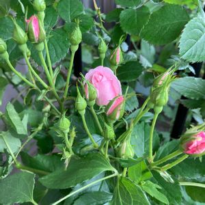 今年の春買った新苗ピエールドゥロンサールの立派なシュートが出てます葉🍀🍀どんどんツルも伸びてます。この子を何処に置いてどんな風に誘引するか全く決まってません😭😭悩み中…🤔💭…🤔💭