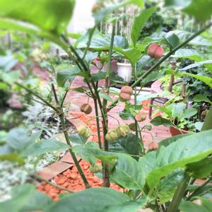 地上部で、もう秋始まりました。 大実紅マユミの紅葉🍁 今年は小さな蕾が沢山あったのに、 初夏の長雨で全部無くなり、 実は1つも成りませんでした😢 この地域では今回の台風被害は無く過ぎましたが、皆さんの所は今回酷いようで… 暴風雨で葉が落ちてしまうなら…と、 写真を撮ったあと、取れるだけ葉を取って、鉢をまとめて紐で縛り、 予防していました。 少ししか紅葉を楽しめなかったけれど、 写真で何度も眺めています🍁