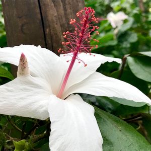 ヒビスクス・ アーノッティアヌス アオイ科 オアフ島原産 ホワイト・ハイビスカス 原種のハイビスカス🌺ですが、 葉っぱの形が少し違いますね❗ 白い花びらと赤いしべが、 原種とは思えないほどの、 完成された美しさ💕😍 @大船フラワーセンター温室 11/4撮影