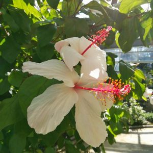 🍀 ヒビスクス アーノッティアヌス🍀 ハワイ原産の原種、アーノッティアヌスは、ややピンクがかった白色の花弁が美しいです💕 赤い花柱が目立ち、ハイビスカスとは趣を異にします。 原種とは思えないほど大きな花が魅力です。 ホワイト・オアフ・ハイビスカスと呼ばれ、オアフ島とモロカイ島に自生します😊