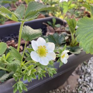 四季咲きイチゴ・モンタナちゃん🍓 真冬はお休みしてたけど、いっぱい咲いてきました❤️❤️❤️