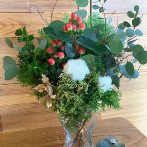 もう初夏を通り過ぎて真夏のようです… 暑い中、熟したジューンベリーの収穫をしました。 去年、だいぶ剪定したから今年は少なめ。 とはいえまだ青い実も半分残っているので 全体ではそれなりに収穫できるかな! たくさん咲いてくれた薔薇と、シモツケ、 オルラヤ、スープセロリ、ツルニチニチソウ など家のお庭から摘み取ったブーケとともに