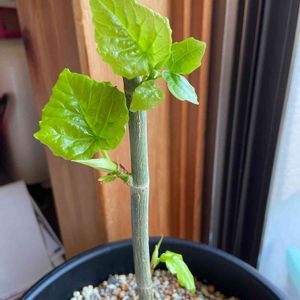 ウンベラータ挿し木してから38日目。 やっと新芽が開きました🌱 ということは順調に根付いたんだね! ちゃんと土に植えてあげて大丈夫かな?☺️