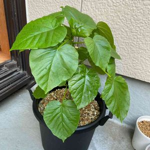 葉っぱが大きくなってワサワサしてきたウンベラータ2号🌱 鉢とのバランスが悪くなってしまったので大きい鉢に植え替えました。お水をたっぷりあげて日陰に置いておいたらカエルさんが遊びに来てたよ🐸